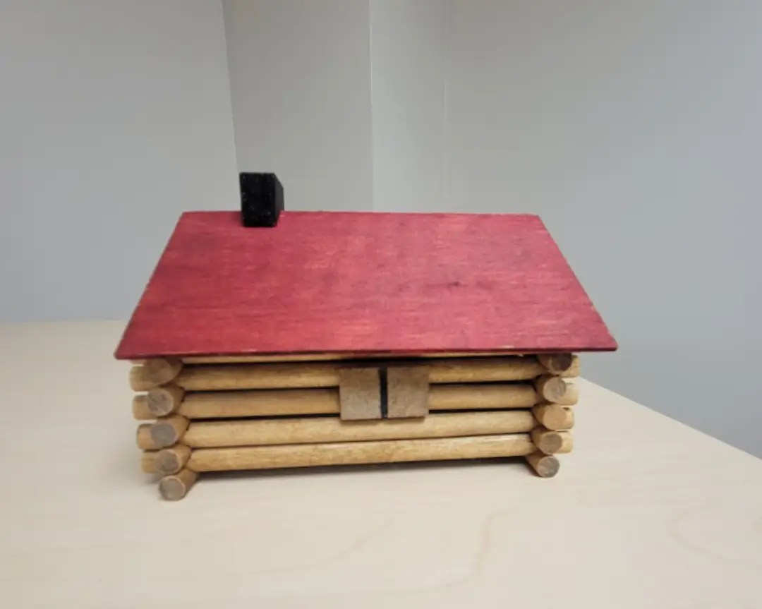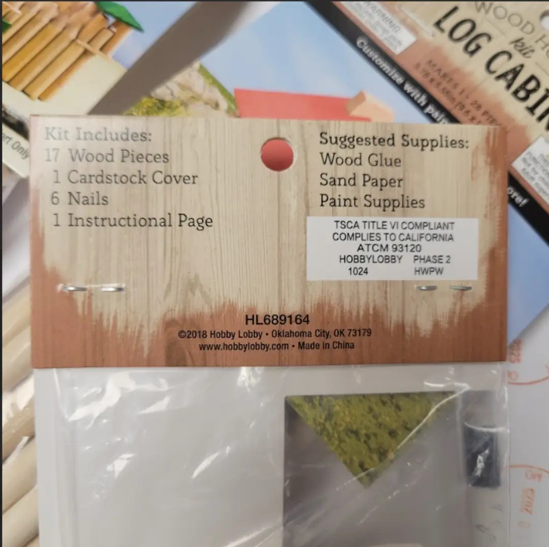Makes a 3.7 x 5.5 model of a log cabin. 28 piece kit comes with wood pieces and one instructional page.